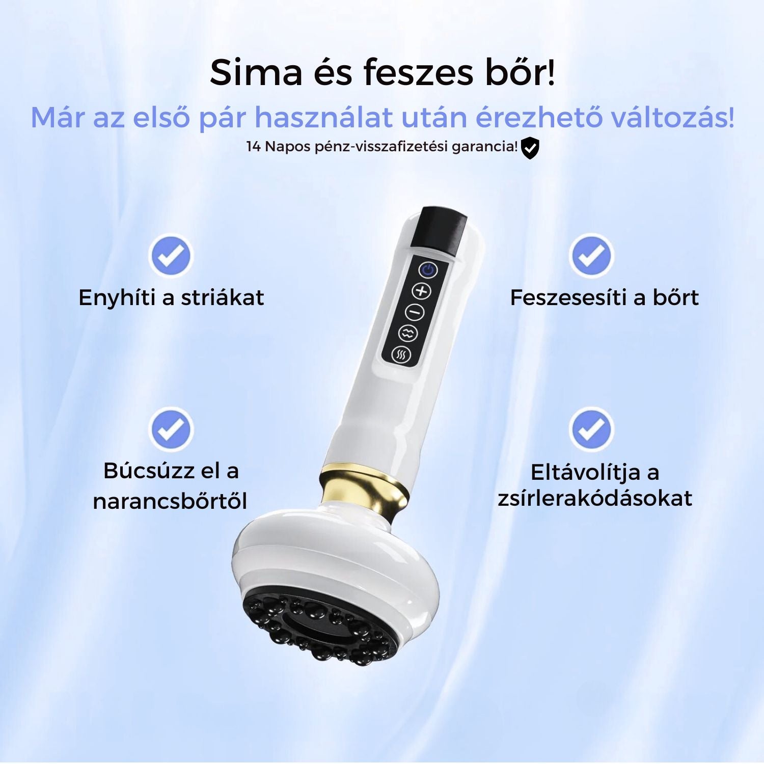 A vákuumos szívás, masszázs és hőterápia kombinációjával küzd a cellulitisz ellen, serkenti a keringést, serkenti a nyirokelvezetést és elősegíti a kollagéntermelést. Ez a célzott megközelítés segít lebontani a bőr alatti zsírlerakódásokat és javítja a bőr rugalmasságát. Rendszeres használatával jelentősen csökkenthető a narancsbőr megjelenése, így bőre simább és feszesebb lesz.